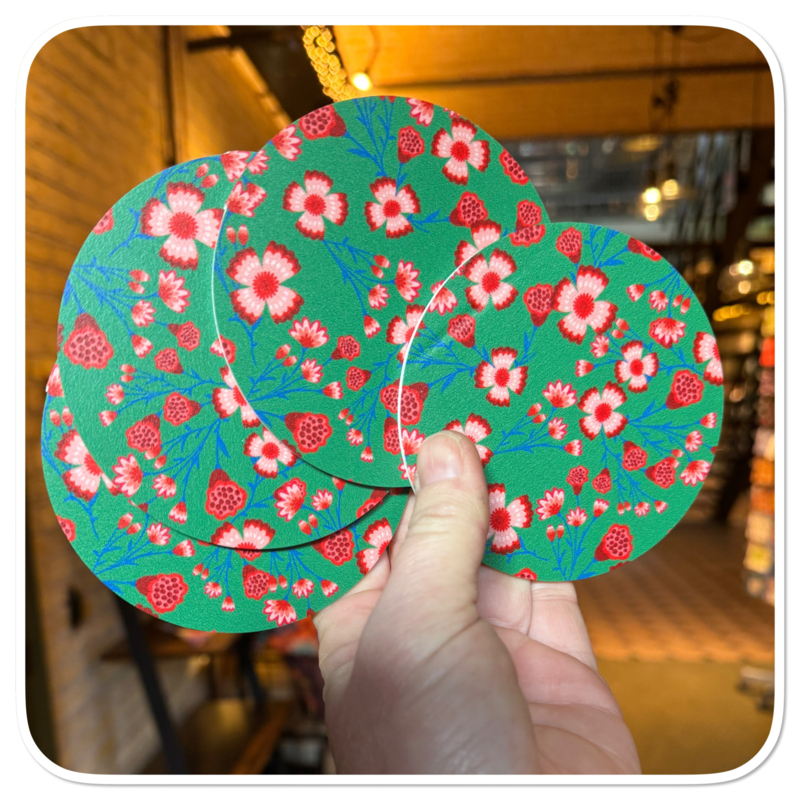 Ronde onderzetters Blomke groen rood - 4 stuks