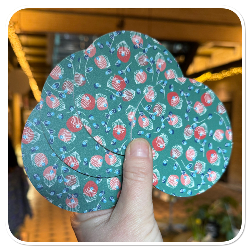 Geef je tafel niet alleen bescherming tegen kringen, maar ook een vrolijke toevoeging met deze onderzetters met een bloemen illustratie van Ellenstyll.