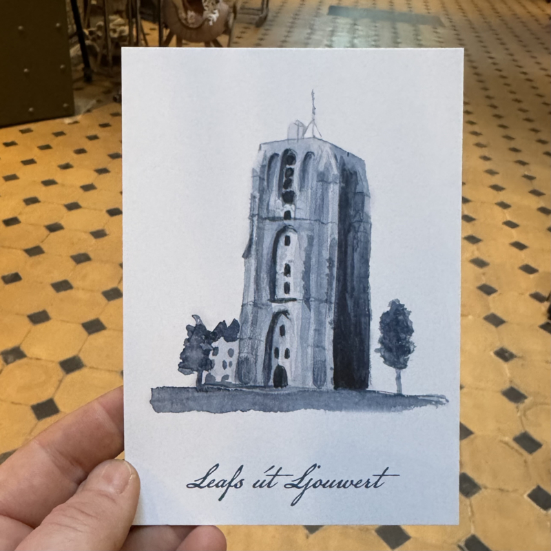 Leeuwarden Oldehove kaart - leafs ansichtkaart blauw aquarelOldehove postkaart