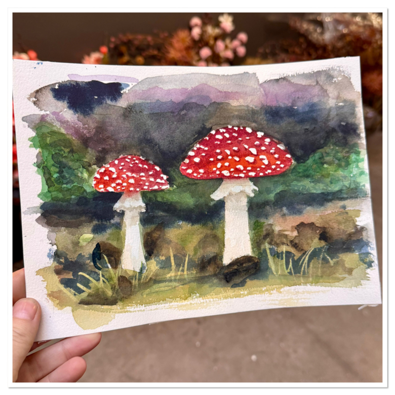 Veel ontwerpen in de Ellenstyll webshop beginnen als aquarel. Vanuit deze originele schilderingen ontstaan later ook kaarten, onderzetters en andere producten.